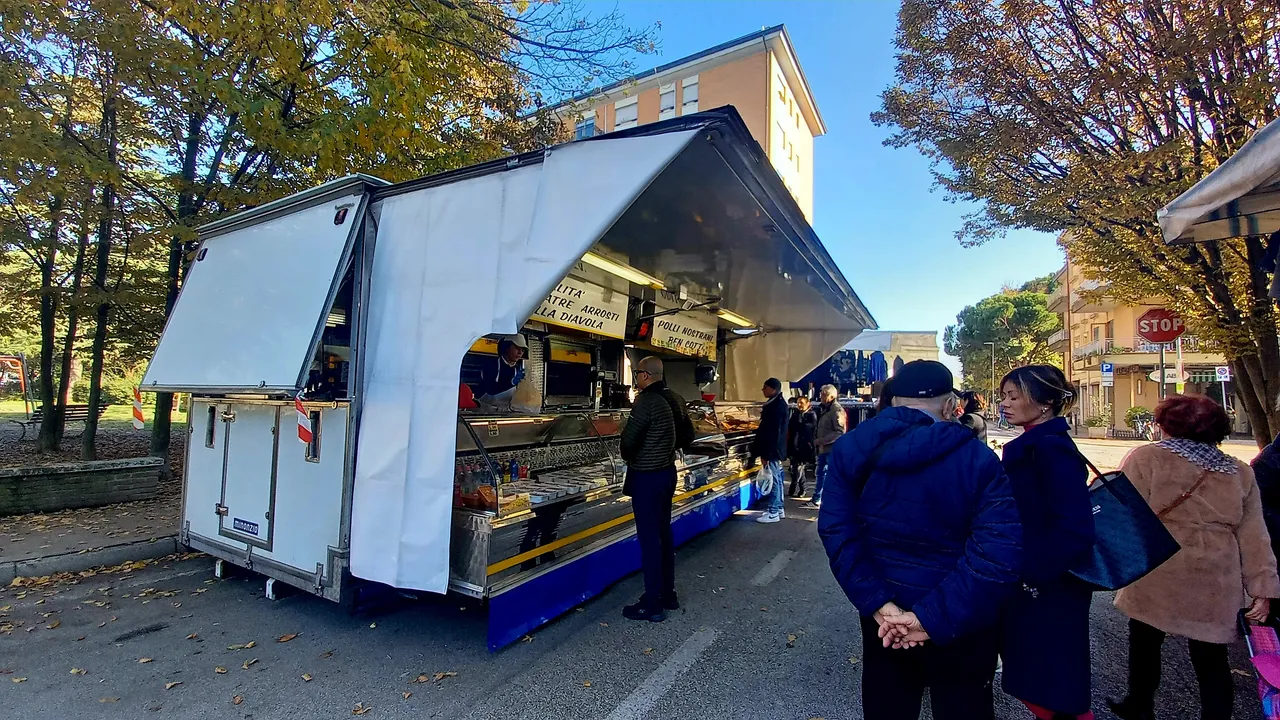 Я разом з дідусем, яким я опікуюся також виходимо здійснити необхідні покупки. Деколи не купуємо нічого. Просто ходимо та розглядаємо що нового привезли торговці. Базар це місце зустрічей місцевих жителів. Чути веселі розмови. Італійці нікуди не поспішають і поговорити люблять.