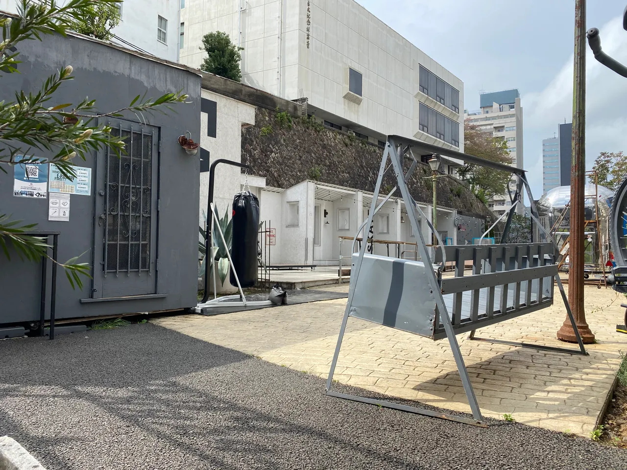 I looked for breaks in the barriers to see what was hidden back there. A sidewalk cafe?