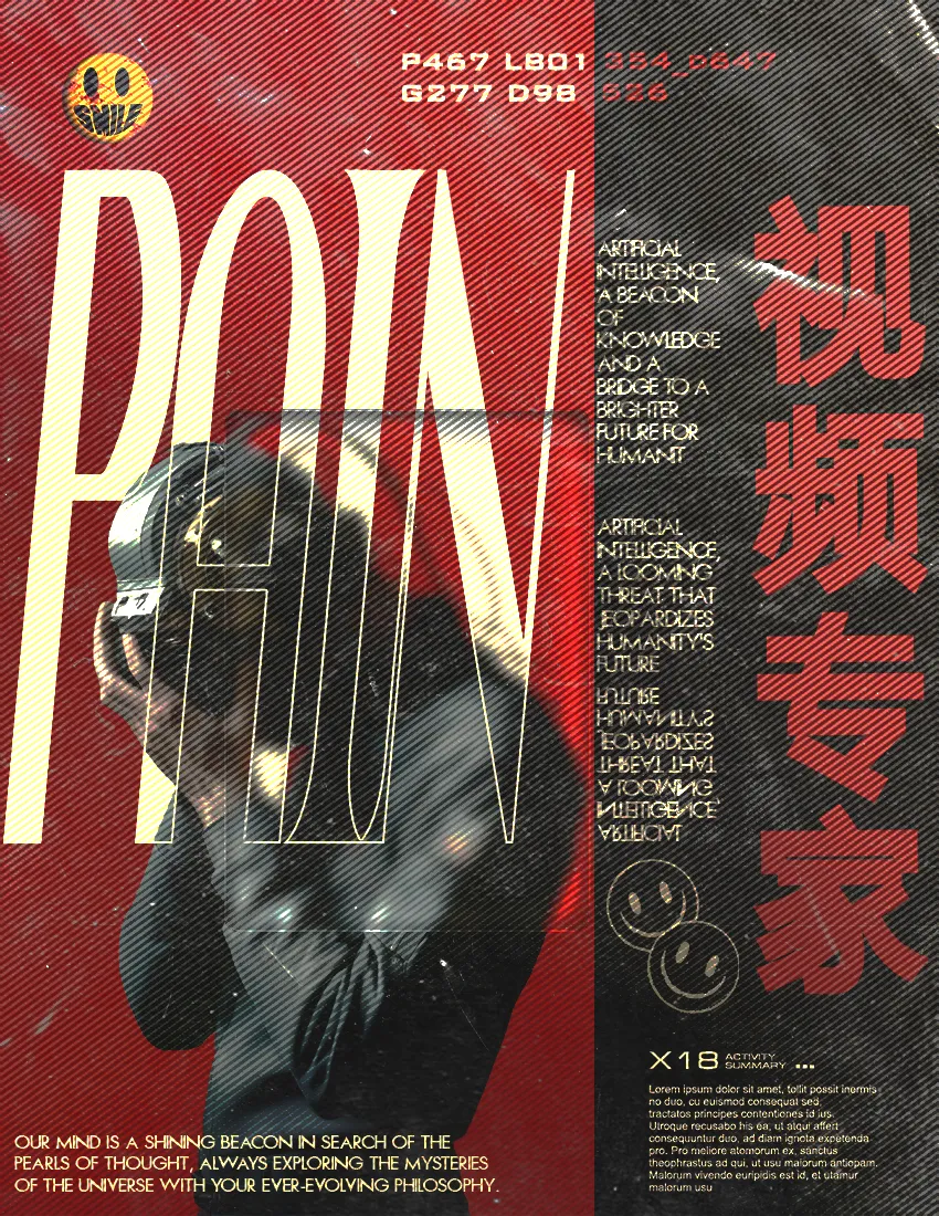 In the video, you can see the final pre-design, and here I'm providing how it would look improved with more text content. Also, we can see how the texture greatly enhances the mentioned design style.