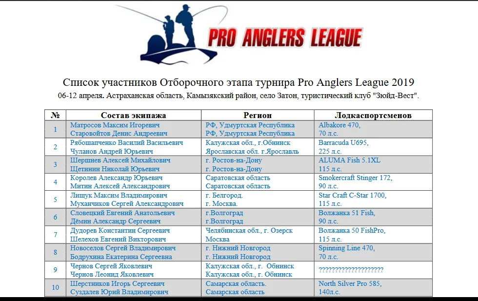 The new season of the largest and most prestigious commercial fishing tournament for predatory fish from boats in Russia - ProanglersLeague begins. And this tournament begins , as usual, with the qualifying stage. This season, 13 crews apply for 6 vacancies in the main draw of the tournament. Selections take place on the Lower Volga, in the Astrakhan region. Participants adopt fishing base "Zuid-West".