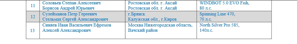 Here is a list of the crews of applicants for places in the main draw PAL.