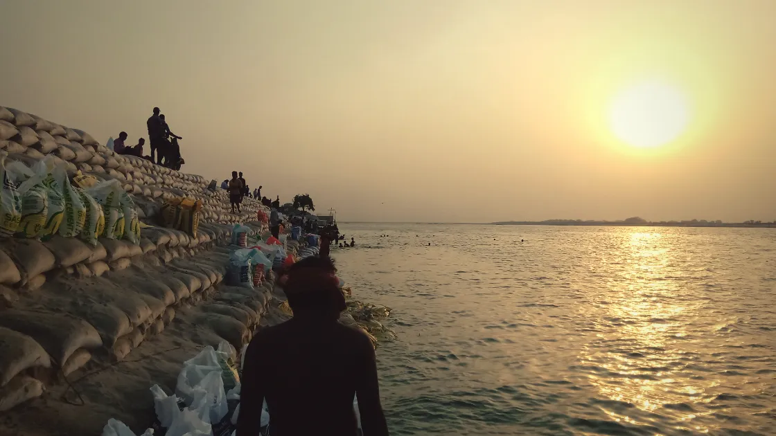 This is Digha Ghat or the Banks of Ganga situated in the state of Patna. It is a major public attraction where people enjoy the cool breeze and enjoy bathing in the cool waves of Ganga. Due to ongoing summer season, kids or elders found bathing at many specific places throughout the day. As I visited the place in evening, I found few boat carrying sand from other side and filling at this side.