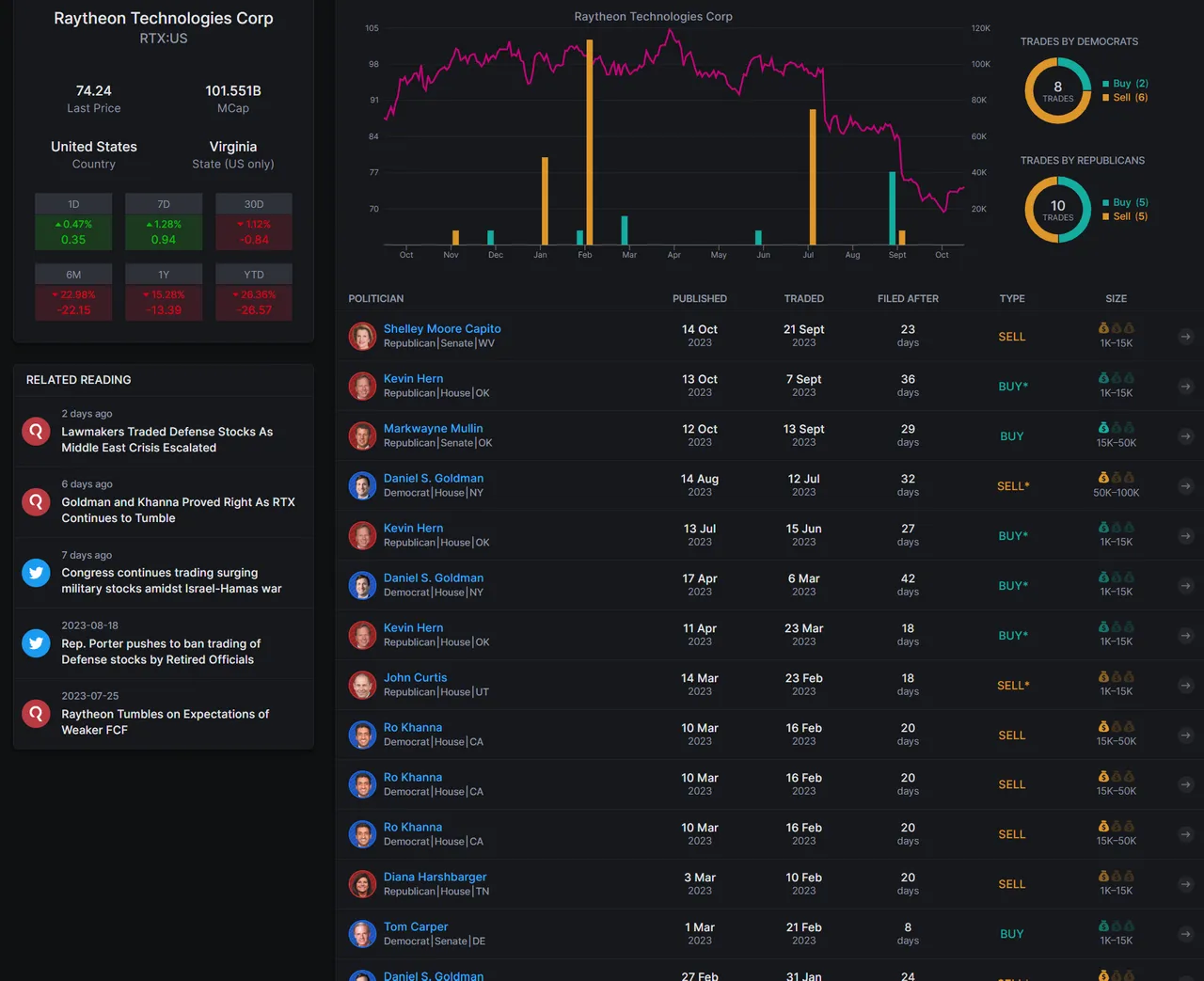 As I mentioned in a previous post, major wars are ongoing, and the world appears to be becoming more dangerous by the day. However, in the stock market, despite the prevailing sentiment, everyone is still striving to make money. Today, I want to discuss the individuals who make decisions about wars in the US – the people who, with their votes and influence, can either initiate or end a war. But what happens when these individuals are invested in companies that profit from war? When, through my vote, I can contribute to a company in which I hold stocks, leading to a significant increase in its stock price and thereby boosting my portfolio. Is this a conflict of interest? Is it ethical? Could it make me more inclined to vote in favor of war?