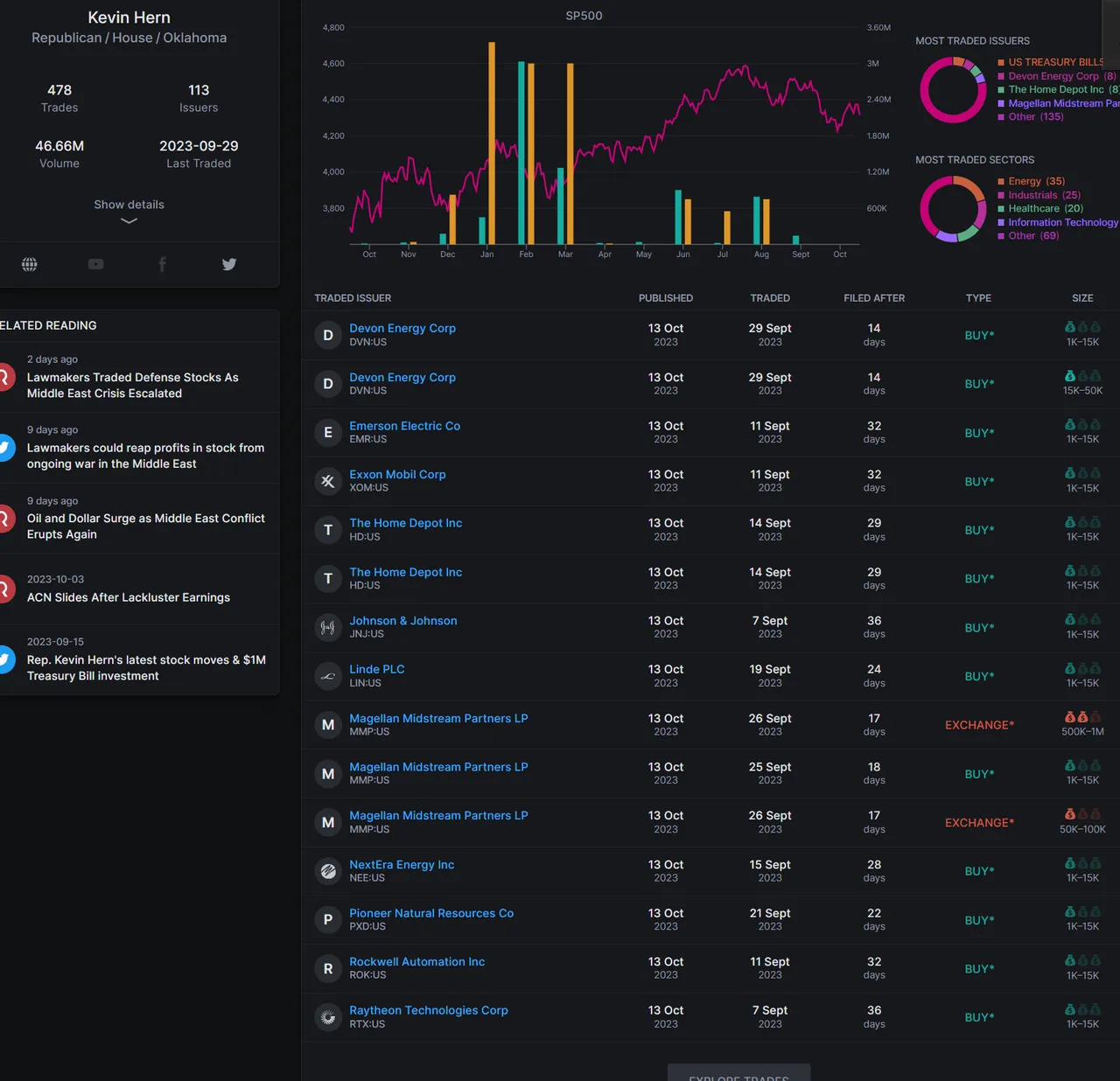 Those are some examples of defense sector companies that members of capitol own stocks and Kevin Hern owns a in more companies.