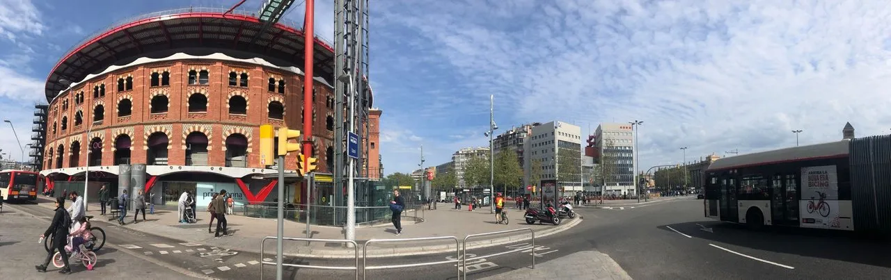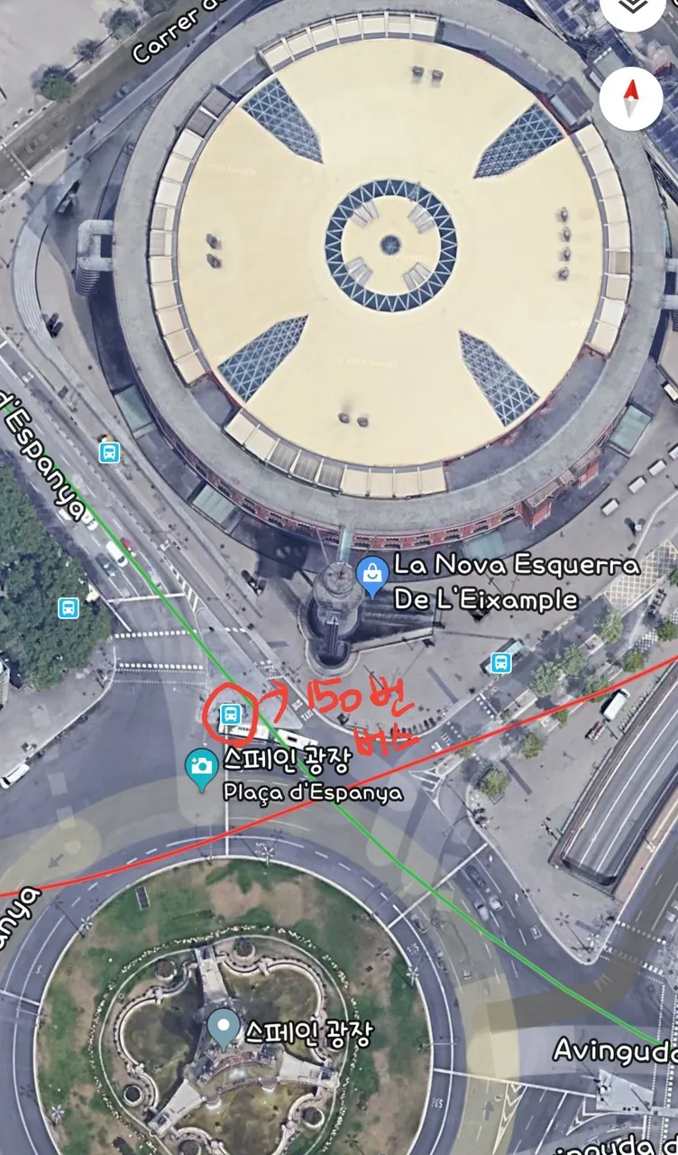 La Nova Esquerra De L'Eixample 라는 동그란 콜로세움같은 디자인의 쇼핑몰 앞에 버스정류장이 있습니다. 버스 간격이 좀 긴편이라 여기가 맞나 불안했는데 기다리니 오긴 오더군요^^