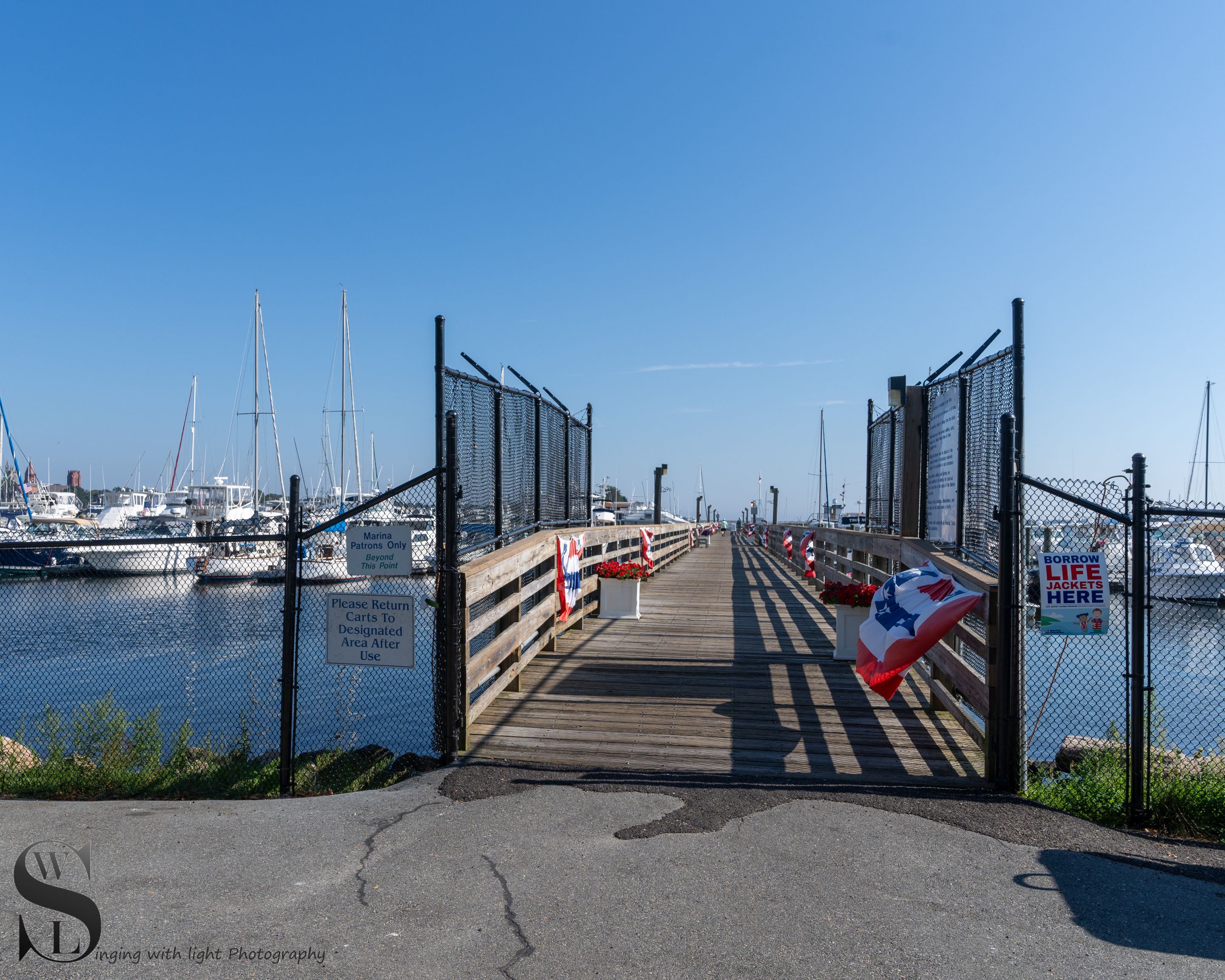Walking further out on the pier, well for those into boating and marinas, is it a pier or a dock, I kind of thought the docks are where the ships are docked and tied up are the docks, and this raised walkway looks kind of like a pier to me