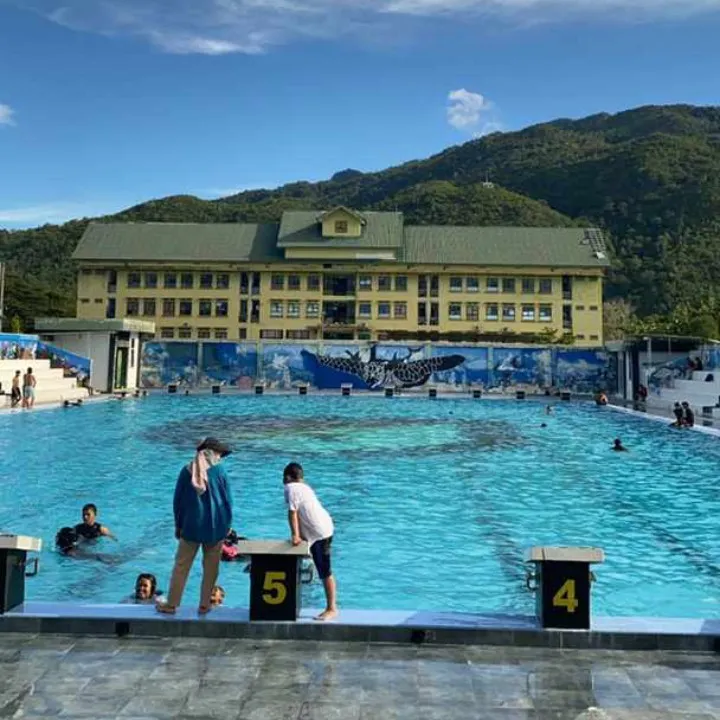 Looking at the surroundings, the swimming pool garden looks very beautiful with a beautiful and cool view surrounded by rows of hills that stand neatly between this water garden.