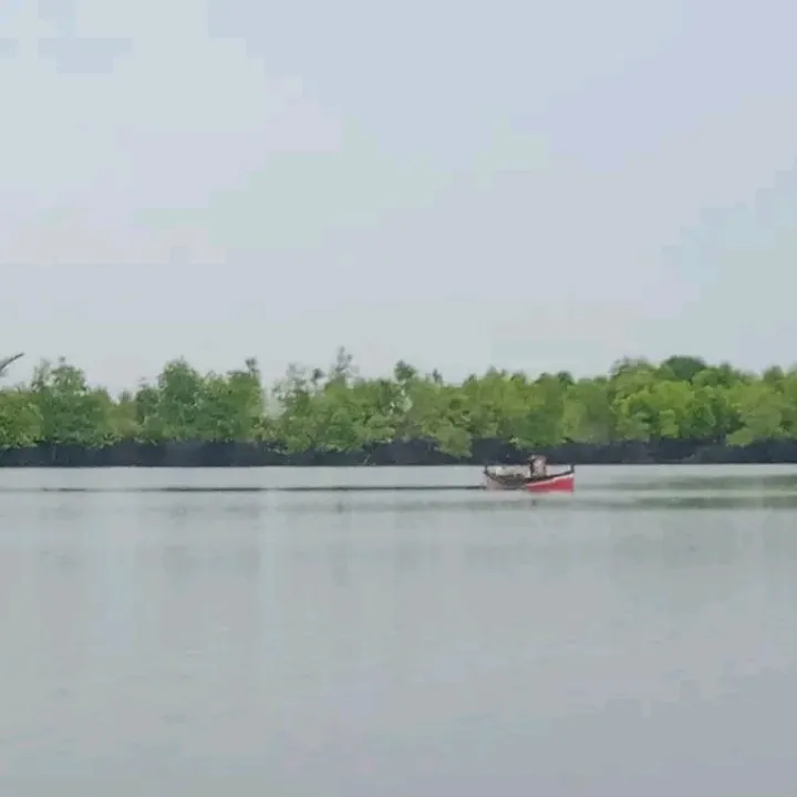 A small canoe was clearly visible from a distance which was working to make a living by catching fish. As one of their sources of livelihood to fulfill their daily living needs.
