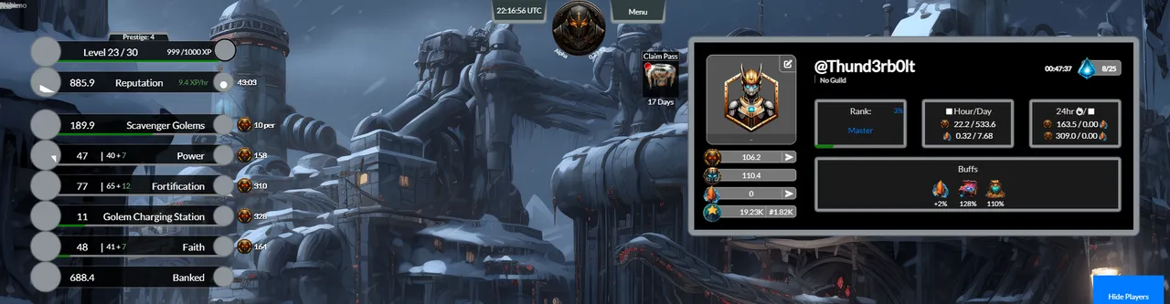 Here I record my progress in the game with my Account thund3rb0lt. What has changed since the previous post?