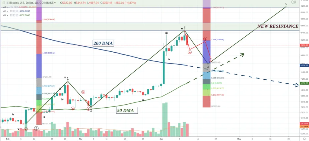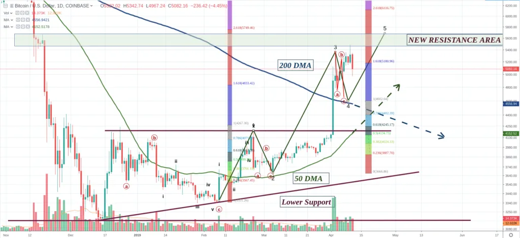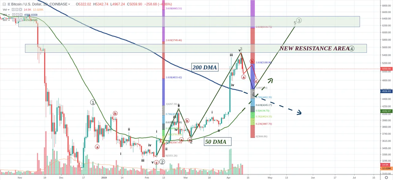 The positive reading here is that if BITCOIN, and so the market, manages to keep this count alive the next stop would be to break the massive resistance placed around 6200 USD.