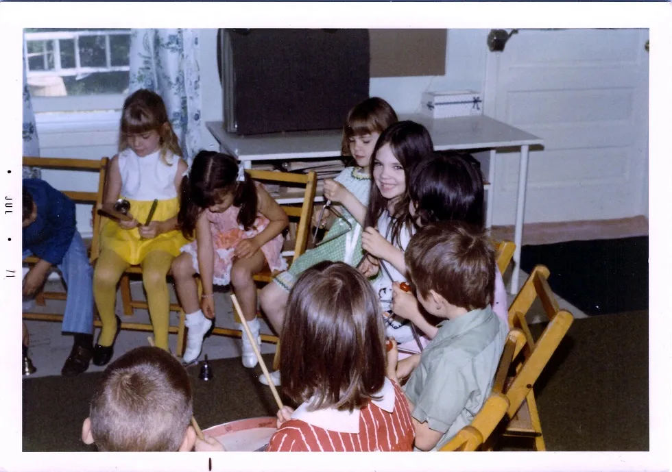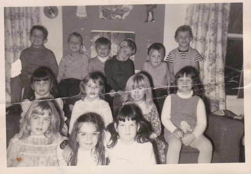 Me (looking at the camera) in Mrs Newman's kindergartem class, 1971