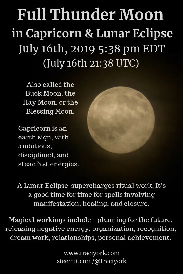 Next up, as a bit of insurance policy to make sure you don't see the picture of the front of the cards before you've made your choice, I'm putting a graphic here as a type of spacer/spoiler prevention. Since today is the Full Thunder Moon in Capricorn and a Lunar Eclipse, I created an infographic about it for this purpose.
