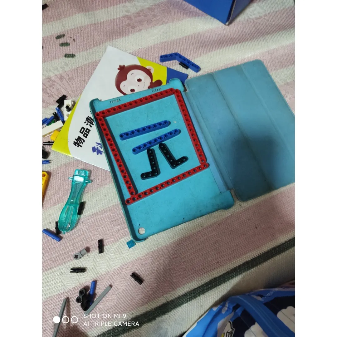 昨晚做好了饭菜,没什么事了,我就进书房看他在做什么。只见他趴在床沿边,双手在摆弄他喜欢的积木。我凑前一看,一个歪歪扭扭的有点小丑的看起来像是字但是我又不是非常确定的玩意。我漫不经心的问了一句:这是什么呀?“园”他头都不抬一下的回答我。我定睛一看,真的是一个园字呢!只是他摆放的位置不是很精确,看起来有点别扭。那一刻,我真的震惊到了。我包括队友都没有在他面前教他这个园字,更别说教他摆或者写(因为他阿拉伯数字的一还不会写)。他是怎么学会的呢?为了确定是他自己弄的字,我又让他自己重新摆放了一次。拍了视频分享给了老师,老师也表示很震惊,因为对于一个小班的小朋友,他们并没有教任何汉字的。猜来猜去,都估计是在印有学校名字的被子上学会的字,因为他只要一看到那些字都会在念“xxx幼儿园”。