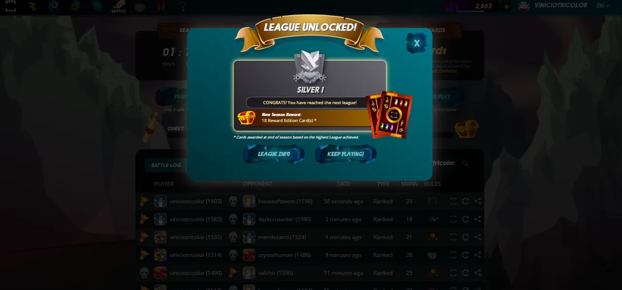 Com isso consegui chegar a prata I :) e garantir as minhas 18 cartas vamos ver se o ouro vem nessa madrugada fria.