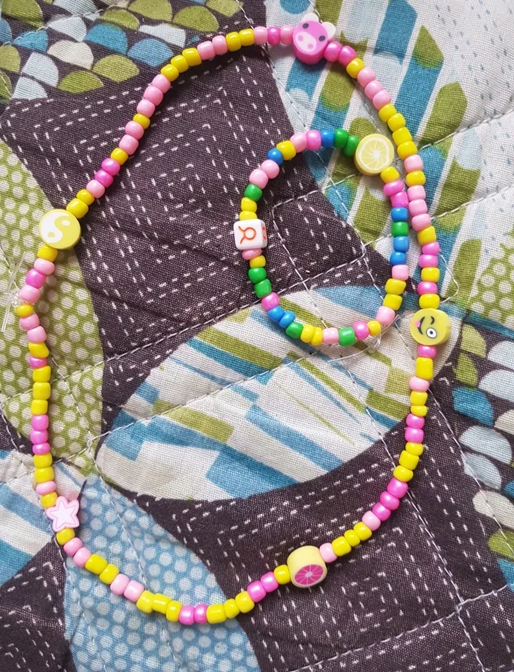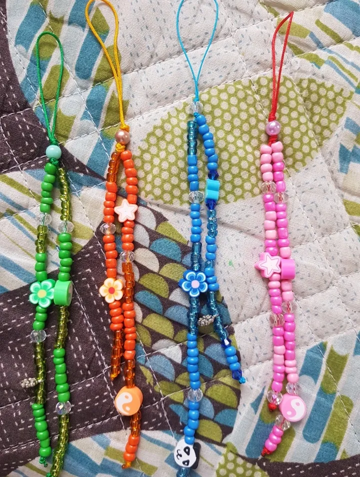 The gindalejas are accessories very similar to the bracelets as they are long and sometimes closed, this is obtained by Chinese thread which is known as the thread for weaving which also has different colors designed for this type of manufacture, they are mostly used to decorate cell phones or bags, these are obtained by thread and pearls or gindalejas obtaining an oval, circular or straight accessory with the two pieces of thread already made arranged in parallel which almost always acquires a U or V shape. The necklaces are more complex since its confection is circular as the bracelets and bracelets, but are preferably made with a transparent elastic thread which is known as fishing line or elastic which gives you a perfect elasticity for the type of neck of each person and allows not too tight or too loose being a light and comfortable to wear attire, This is also decorated with pearls, gumdrops or gummies that are small figurines of different shapes and colors that are formed along with diges, also pearls and beads according to the taste and preference of the person who uses it.