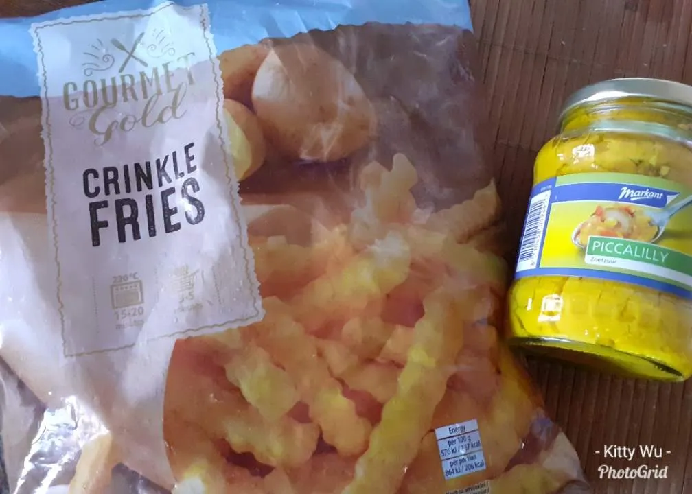 We love French fries and do not only eat it with mayonnaise but with tomato ketchup, curry sauce, raw onions + ketchup + mayonnaise, peanut sauce, applesauce, stew, etc.