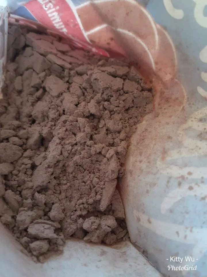 Chocolate pudding with rum. One thing is for sure Dr. Oetker does not use real cocoa and the rum is fake too. My eyes start tearing as soon as I open this bag.
