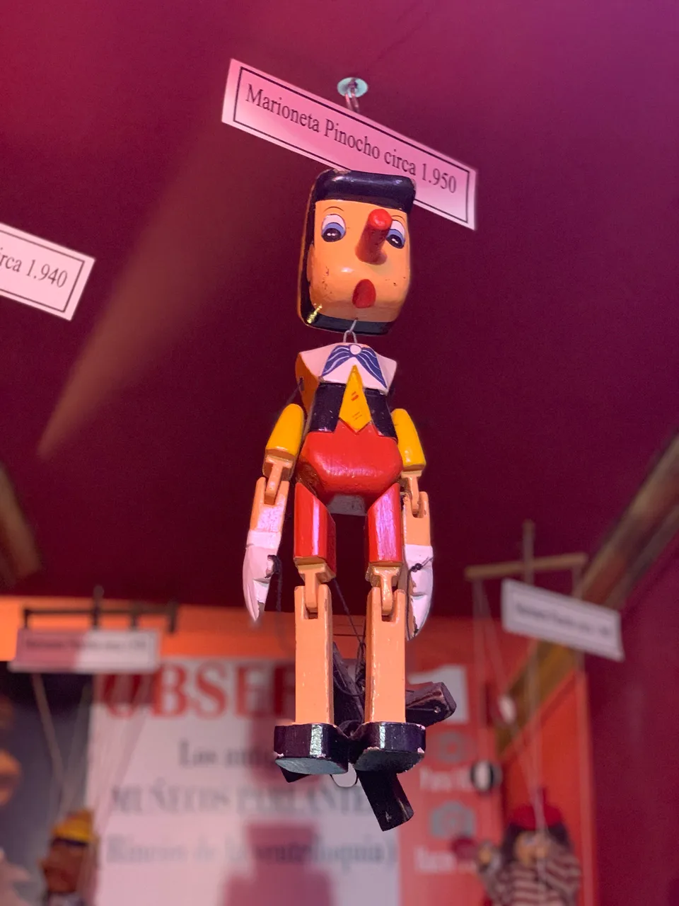 En mi visita a la Casa Museo de la Magia vimos muchos objetos de colección, desde barajas de cartas de todos los tipos y de todos los años, hasta trucos de magia de todos los colores... también pudimos ver piezas de colección como estas marionetas de madera con unos cuantos años...