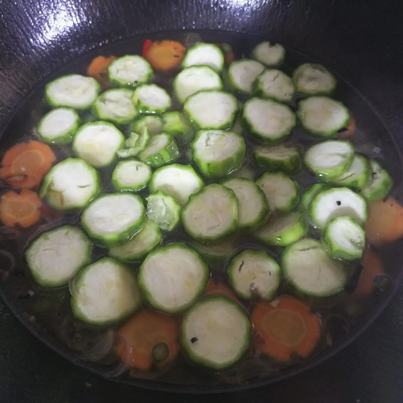 Good afternoon, dear vegan friends, today the weather in my area is quite hot, so it makes me want to try food that is safe for the throat, making fresh vegetables from carrots and gambas in clear sauce is one of the right choices.