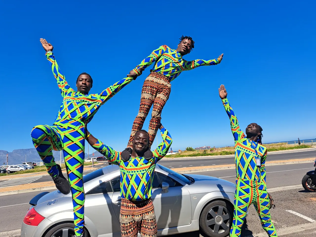 They arrive, announce themselves through a series of rehearsed synchronized speeches and then do several running flips and jumps.