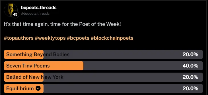 The winner of the poll will receive 60% of next week's Poet of the Week post.
