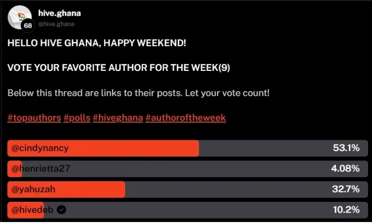 VOTE YOUR HIVEGHANA FAVOURITE AURTHOR FOR THE WEEK(10)
