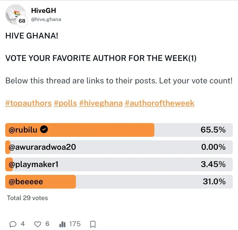 VOTE YOUR HIVEGHANA FAVOURITE AURTHOR FOR THE WEEK(2)