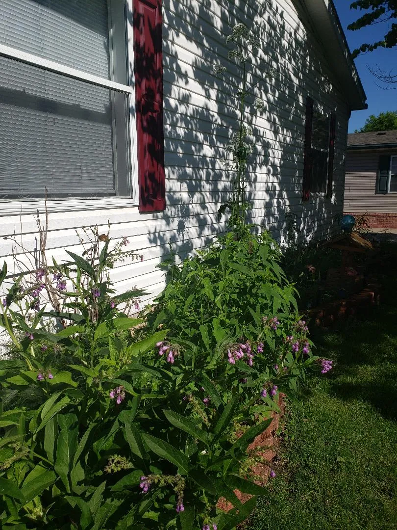 Right next to the comfrey sits some bee balm (Bergamot) that I planted last year and I didn't think it would ever do anything; but this year it stands about five feet in height.