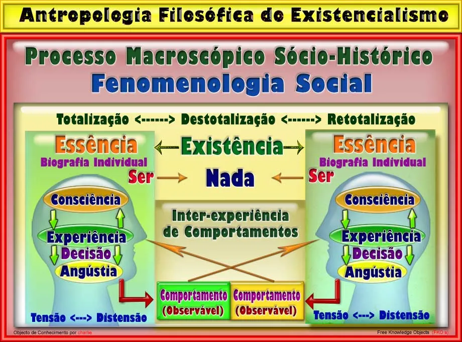 O Existencialismo na perspectiva antropológica, vê os processos históricos como uma fenomenologia social, numa série de Totalizações (equilíbrios), e Destotalizações (caos ou instabilidade), numa diacronia de Retotalizações da Existência pela interação das Essências das pessoas.