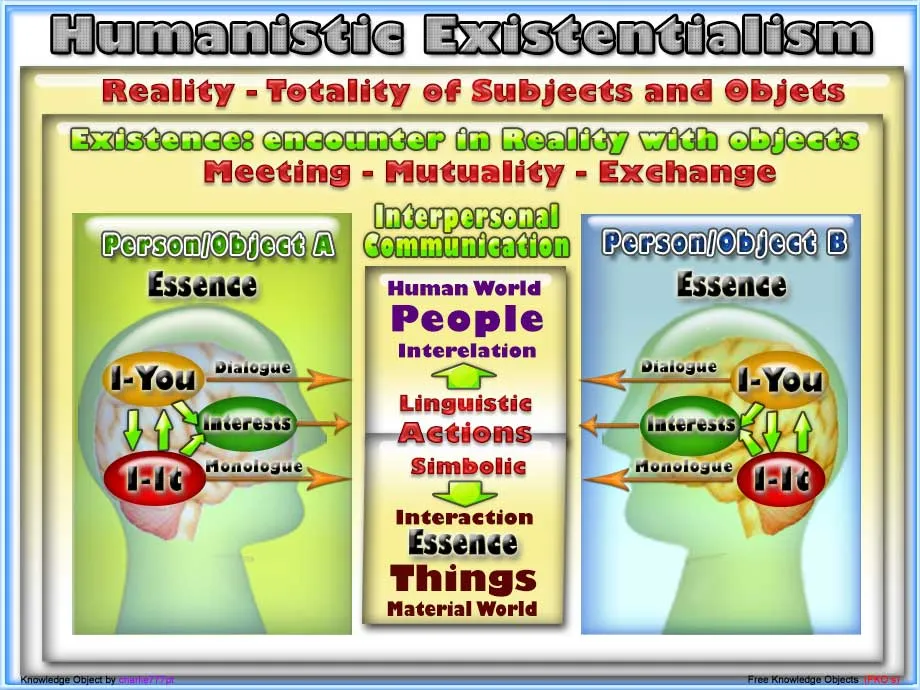 He followed Feuerbach and Kierkegaard, and portrayed our Existence as an encounter in reality with objects ( people and things), using the theological of the I-You and the I-It (mental representations) as modes of consciousness and being in the actualization of that Existence, that he extends to the relationship with God.