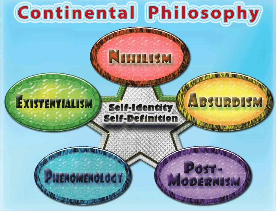 Existentialism belongs to the group of the so-called Continental Philosophy, a name given by the Analytic Philosophy, to get rid of the undesirable emerging theories like Phenomenology, Nihilism, Absurdism and Post-Modernism, that contradicted the rational points of view about reality and people.