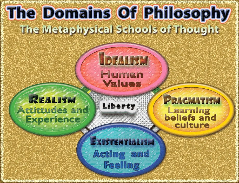 Existentialist philosophy is connected to other metaphysical domains of thought like Idealism (Plato) based in human values, Realism (Aristotle) analyzing attitudes and experience, and Pragmatism (Experientialism) focused our learning beliefs and culture.