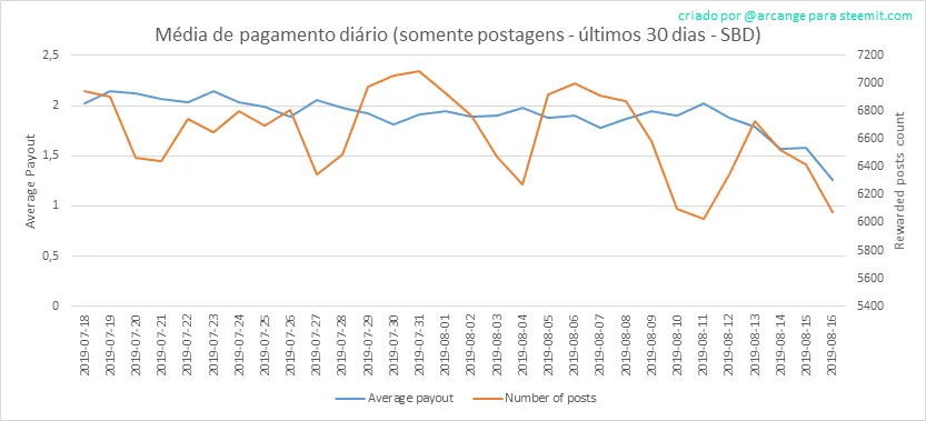 Este gráfico mostra a média de pagamentos por post nos últimos 30 dias.