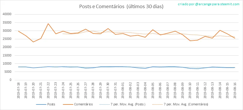 Toda informação presente neste post são baseadas nos dados coletados da blockchain até 2019-08-16 meia-noite UTC. O objetivo desse relatório, é fornecer uma visão clara do que está acontecendo diariamente no blockchain Steem.