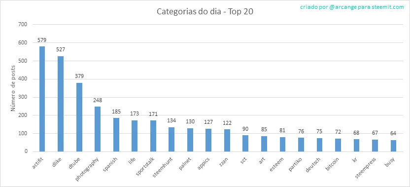 Este gráfico mostra as tag’s mais utilizadas para publicar postagens, desde o inicio do funcionamento da blockchain.