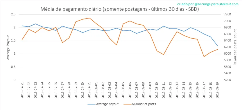 Este gráfico mostra a média de pagamentos por post nos últimos 30 dias.