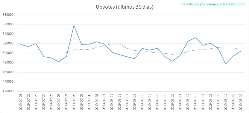 Esses gráficos mostram a evolução da curadores (upvotes) desde o início do funcionamento da blockchain e dos últimos 30 dias.