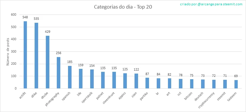 Este gráfico mostra as tag’s mais utilizadas para publicar postagens, desde o inicio do funcionamento da blockchain.