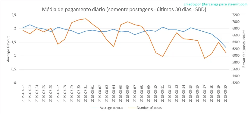 Este gráfico mostra a média de pagamentos por post nos últimos 30 dias.