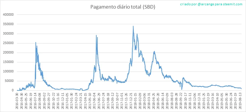 Este gráfico mostra o total de distribuicao de pagamentos (posts e comentários) por cada dia.