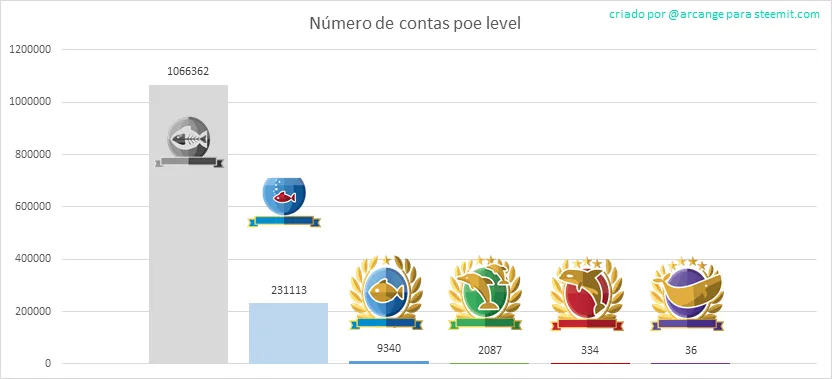 Este gráfico mostra o número de usuários de acordo com seu poder de voto (isso inclui os novos "inativos" e os "Red Fish" - cheque o blog @steemitboard para maiores informações sobre isso).