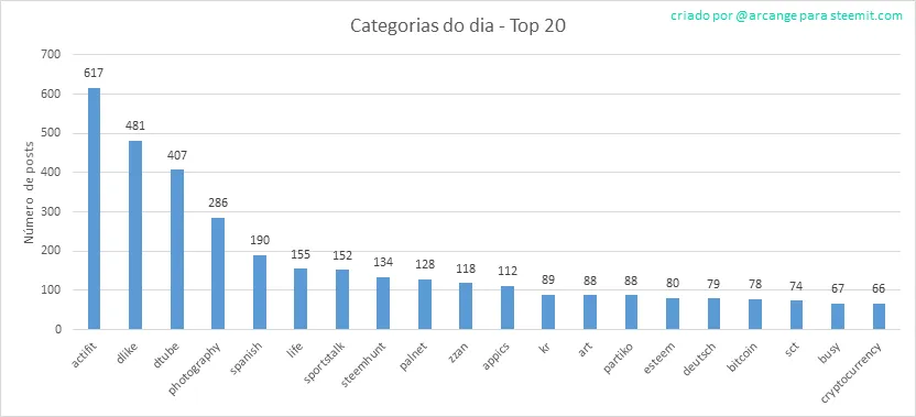 Este gráfico mostra as tag’s mais utilizadas para publicar postagens, desde o inicio do funcionamento da blockchain.
