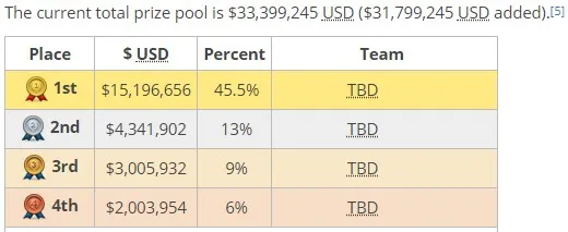 O primeiro colocado vai ganhar a premiação de $15.196.656 USD, de acordo com as informações do Liquipedia