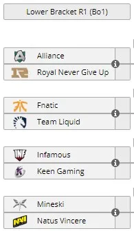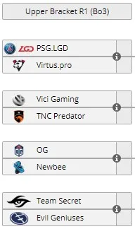 No upper bracket temos grande times, NewBee(The International 2014), Evil geniuses(The International 2015), OG(The International 2018), e temos ainda team Secret que ainda não ganhou nenhum TI mas é um grande um time.