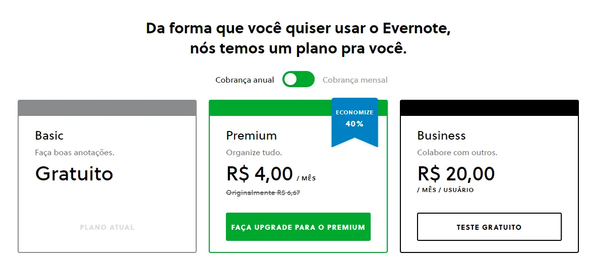 Já faz anos, que utilizo o Evernote, vi ele ter várias funções e recursos legais no plano gratuito e depois foram para a plano pago. :(