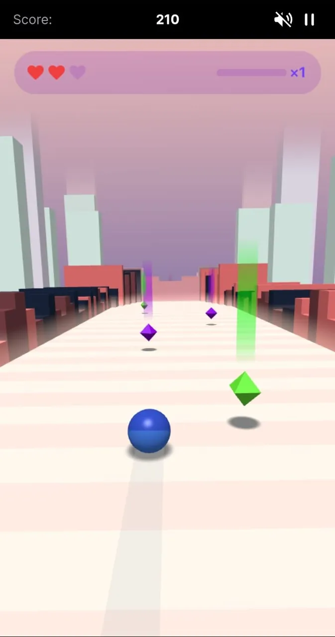 We have 3 lives and when we lose them the game ends. In addition, there is always a music playing in the background, if that music ends the game also ends, that is to say that it is by time and therefore the idea is to go as fast as possible grabbing turbos that are on the road.
