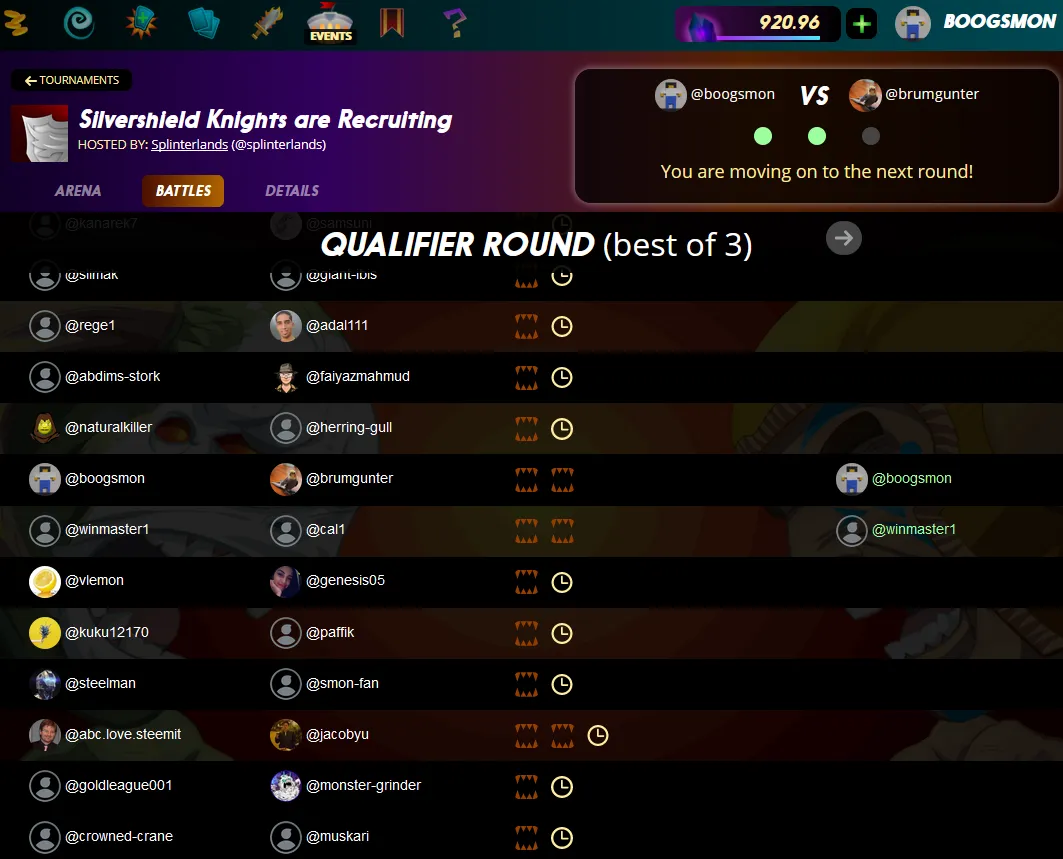 그리고 토너먼트 진행중에 BATTLES 탭으로 가보면 아래처럼