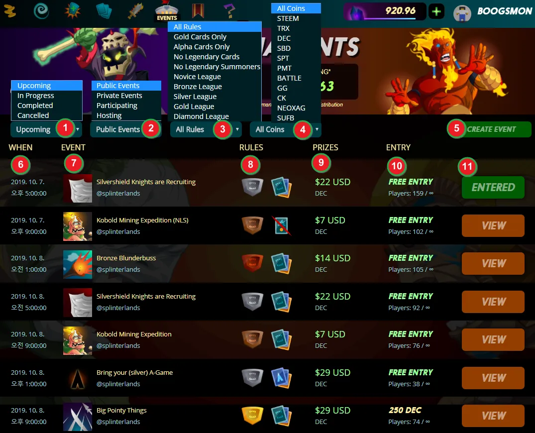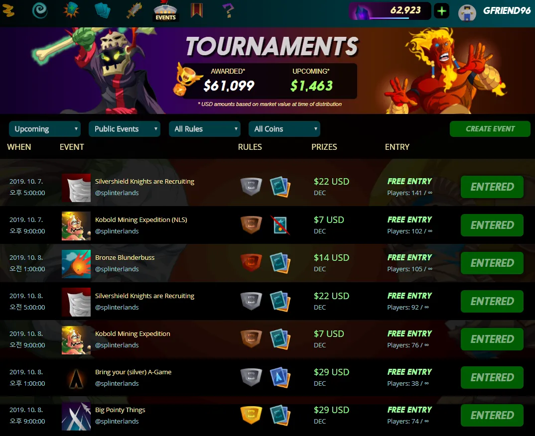 Public Events : 누구나 참여할수 있는 토너먼트.