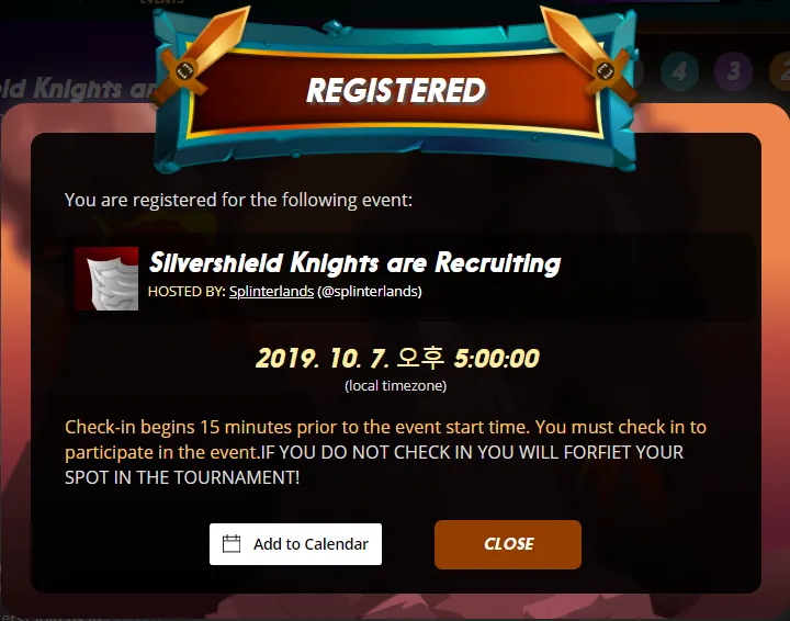 이팝업이 뜨지 않는다면 EVENTS탭으로 토너먼트로 이동해서
