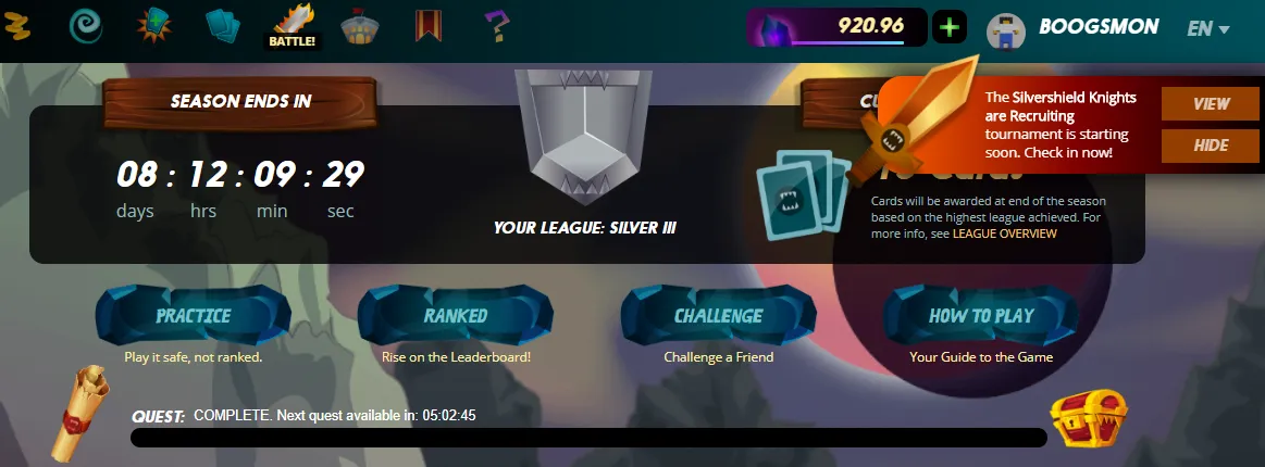 들어오자마자 카드들을 엄청 업글하셔서 벌써 챔피언까지 오르신 디온(@donekim)님을 비롯하여,